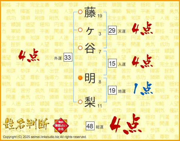 藤ヶ谷明梨さんの総運は48画の4点!