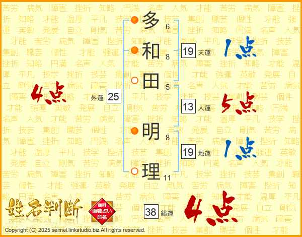 多(6画)和(8画)田(5画) 明(8画)理(11画)