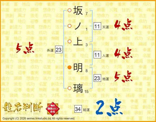 坂ノ上明璃さんの天運は11画の4点!