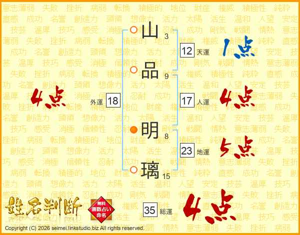 山品明璃さんの総運は35画の4点!