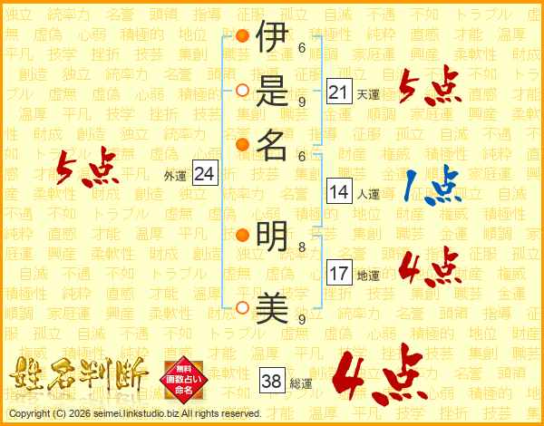 伊是名明美さんの総運は38画の4点!
