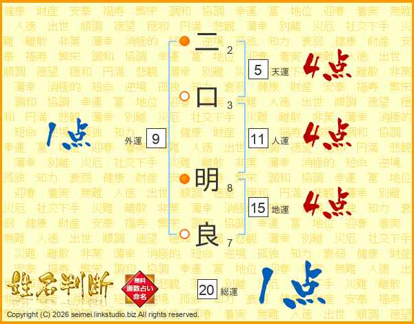 二口明良さんの人運は11画の4点!