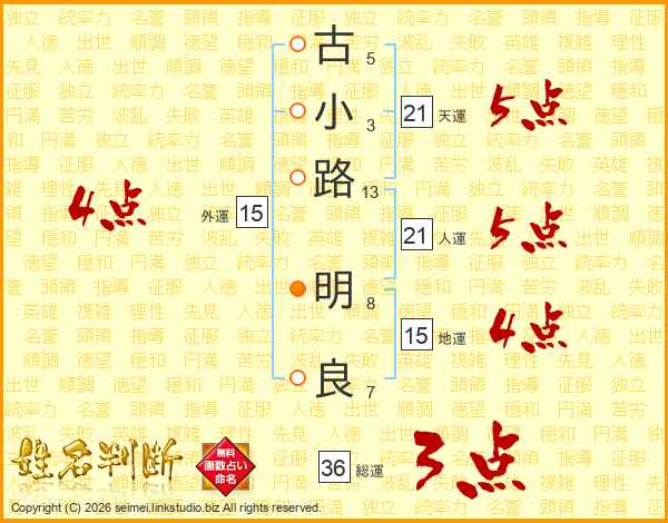 古小路明良さんの人運は21画の5点!