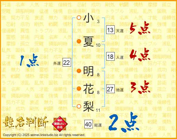 小夏明花梨さんの総運は40画の2点!
