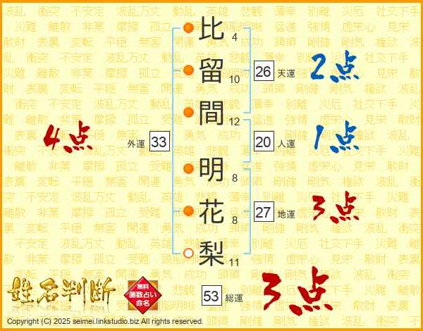 比留間明花梨さんの総運は53画の3点!