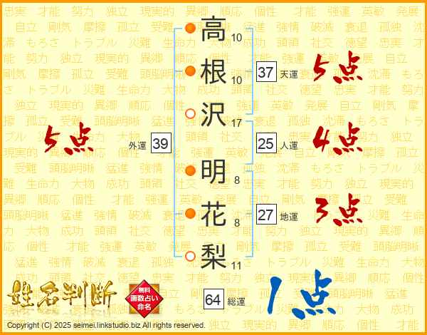 高根沢明花梨さんの外運は39画の5点!