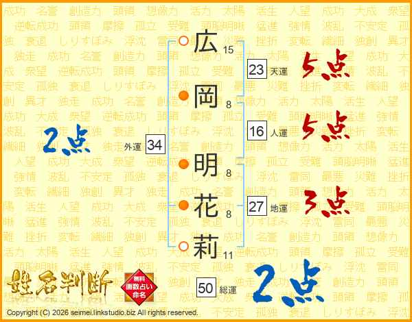 広岡明花莉さんの総運は50画の2点!