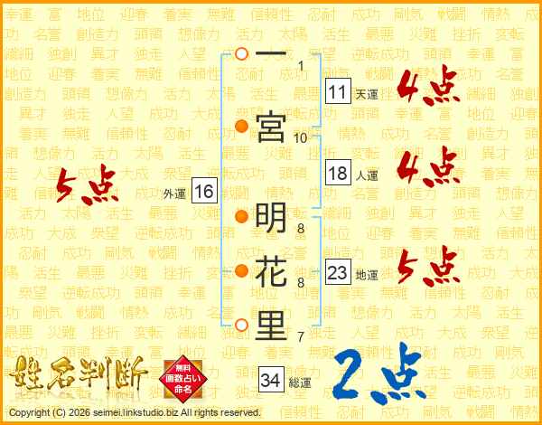 一宮明花里さんの総運は34画の2点!