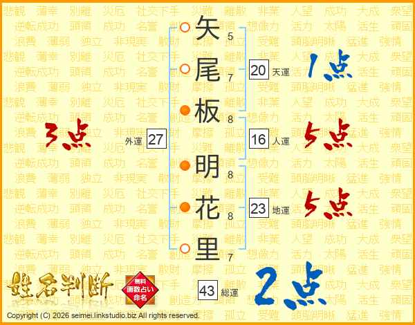 矢尾板明花里さんの地運は23画の5点!