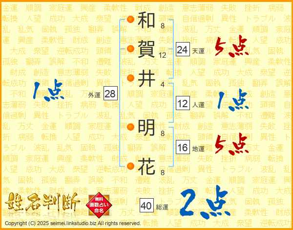 和(8画)賀(12画)井(4画) 明(8画)花(8画)