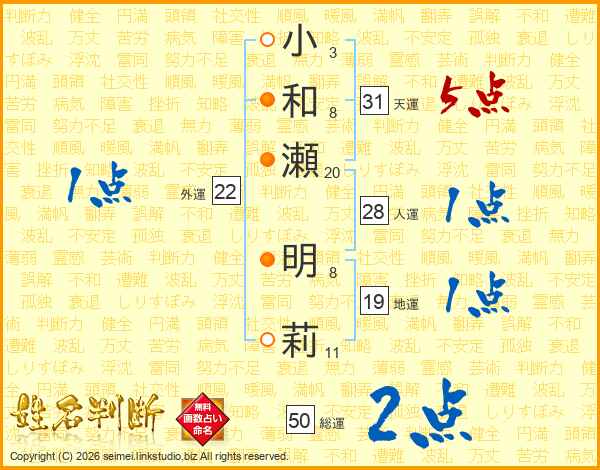 小和瀬明莉さんの天運は31画の5点!
