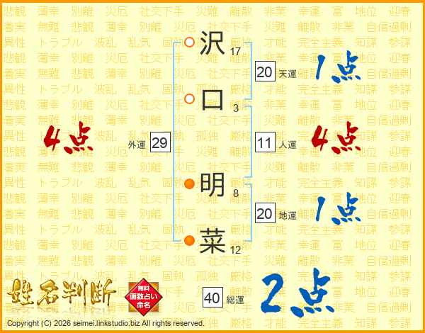 沢口明菜さんの外運は29画の4点!