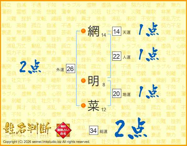 網明菜さんの総運は34画の2点!