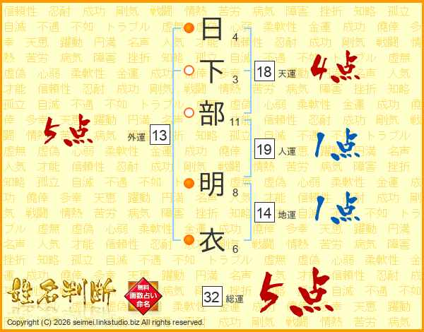 日下部明衣さんの総運は32画の5点!
