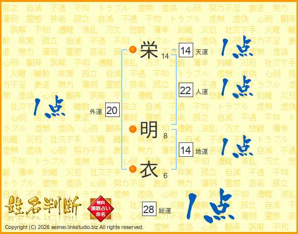 栄(14画) 明(8画)衣(6画)