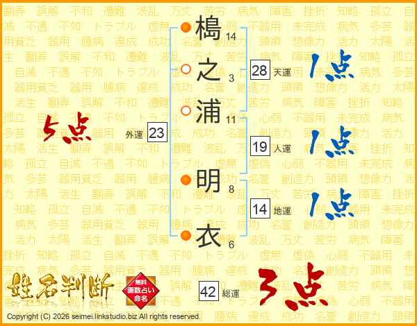 槝之浦明衣さんの総運は42画の3点!