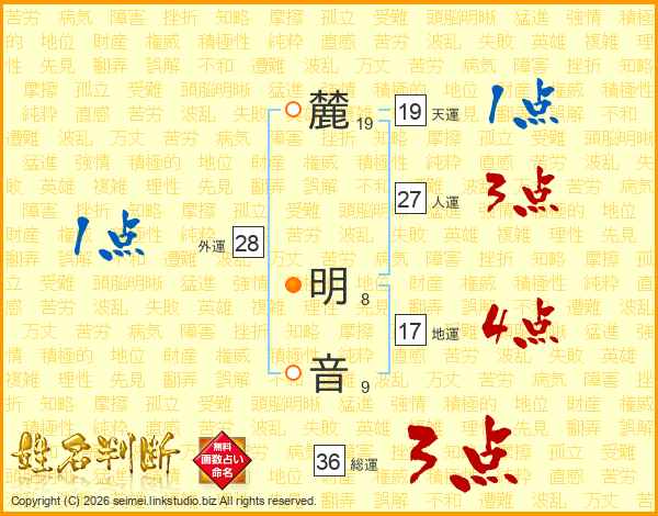 麓明音さんの総運は36画の3点!