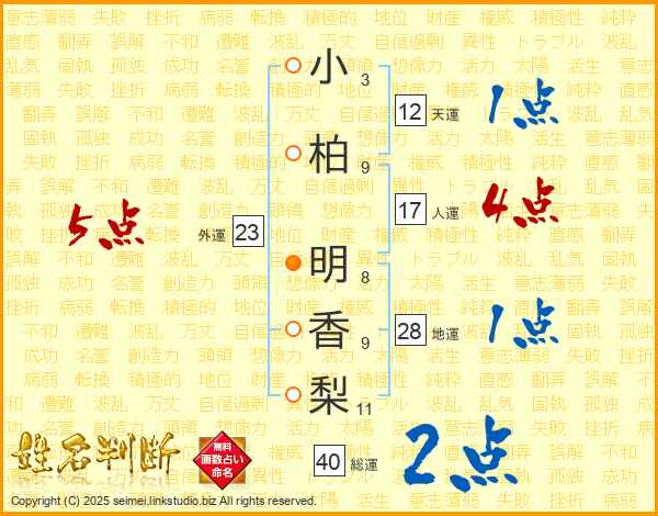 小柏明香梨さんの外運は23画の5点!