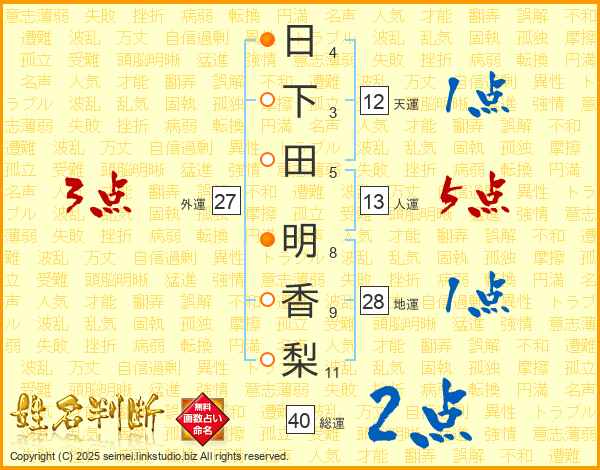 日下田明香梨さんの総運は40画の2点!