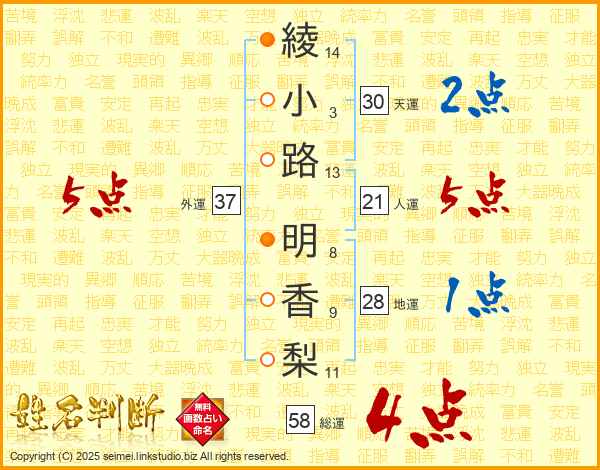 綾小路明香梨さんの外運は37画の5点!