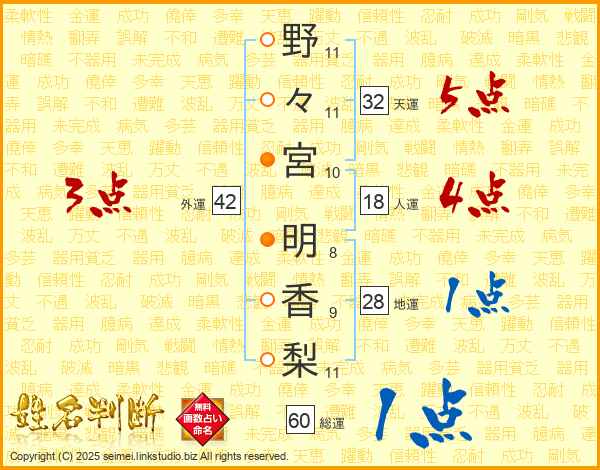 野々宮明香梨さんの天運は32画の5点!