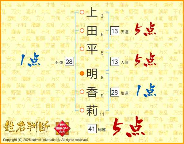 上田平明香莉さんの総運は41画の5点!