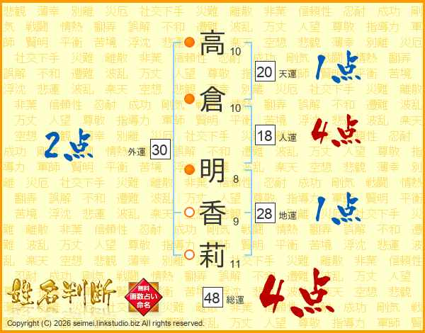 高倉明香莉さんの総運は48画の4点!