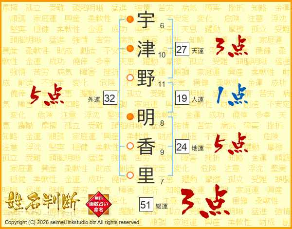 宇津野明香里さんの外運は32画の5点!