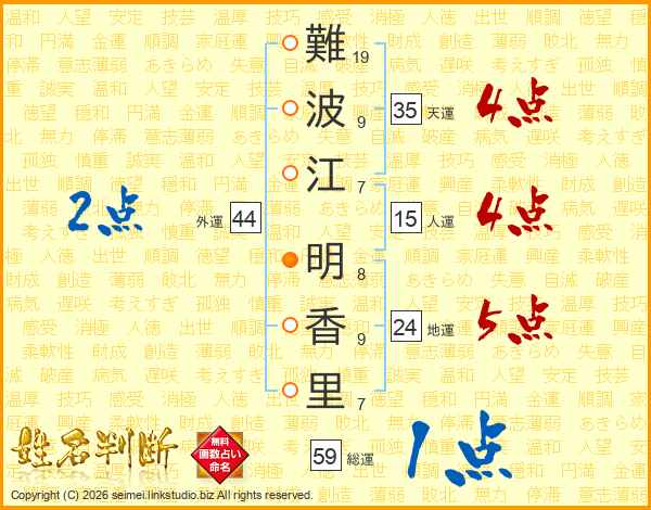 難波江明香里さんの外運は44画の2点!