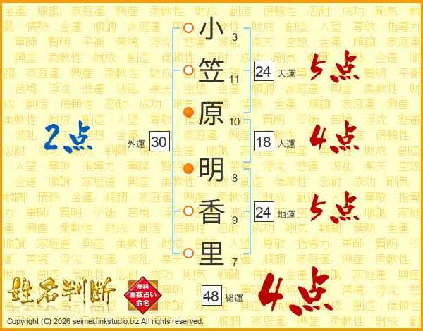 小笠原明香里さんの総運は48画の4点!