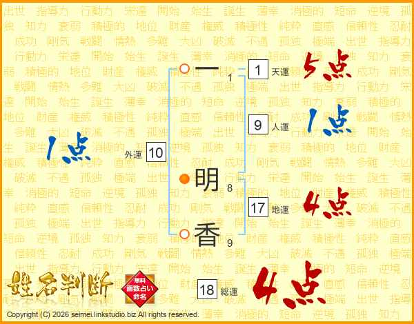 一明香さんの総運は18画の4点!