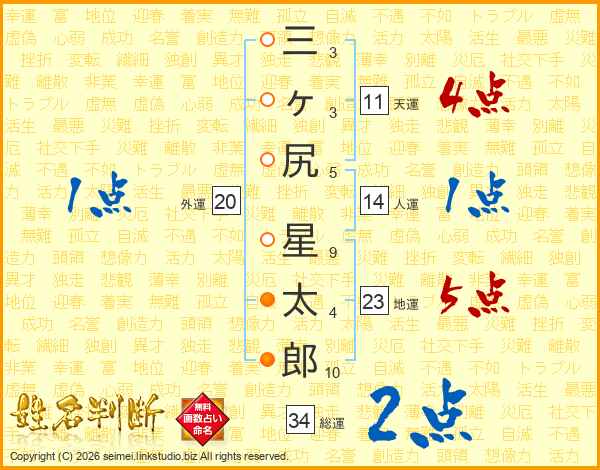 三ヶ尻星太郎さんの総運は34画の2点!