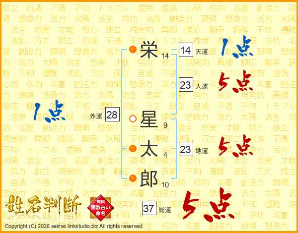 栄(14画) 星(9画)太(4画)郎(10画)