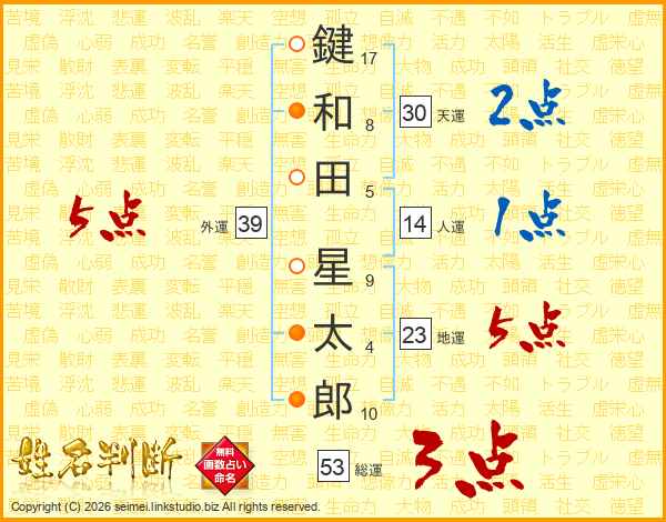 鍵和田星太郎さんの総運は53画の3点!