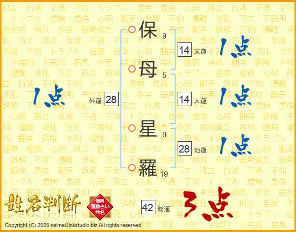 保(9画)母(5画) 星(9画)羅(19画)