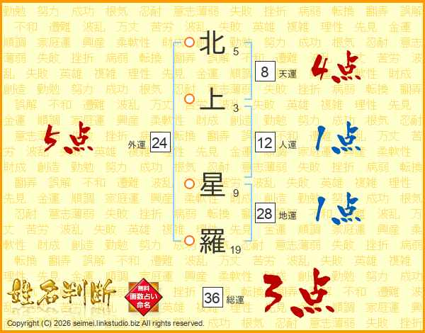 北上星羅さんの外運は24画の5点!