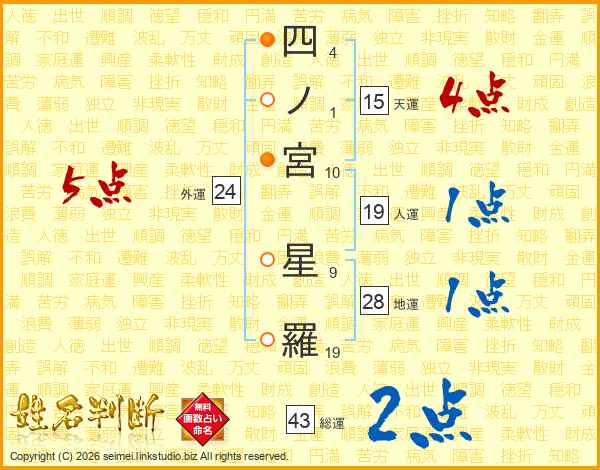 四ノ宮星羅さんの総運は43画の2点!