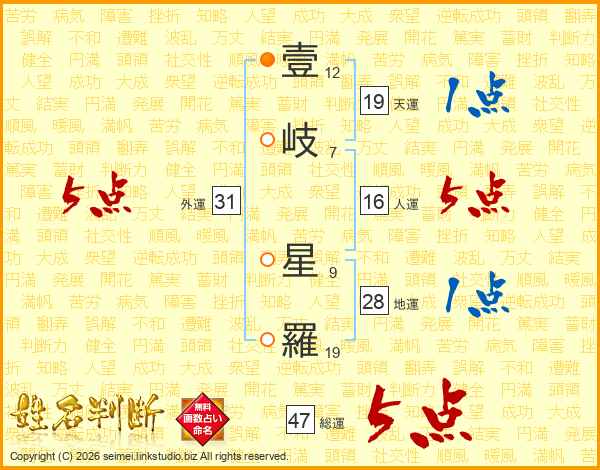 壹(12画)岐(7画) 星(9画)羅(19画)