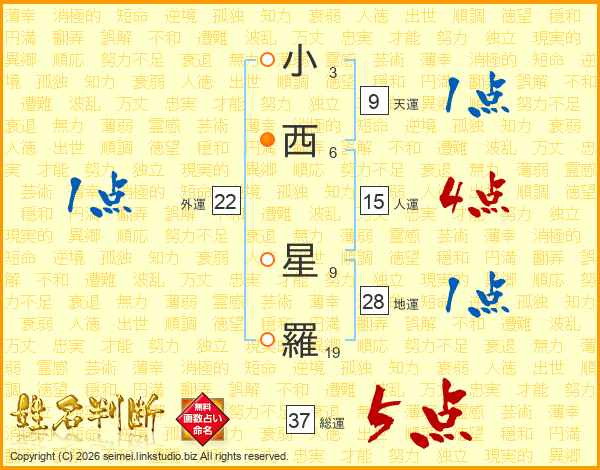 小西星羅さんの総運は37画の5点!
