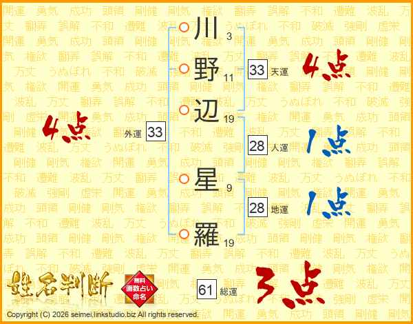 川野辺星羅さんの天運は33画の4点!