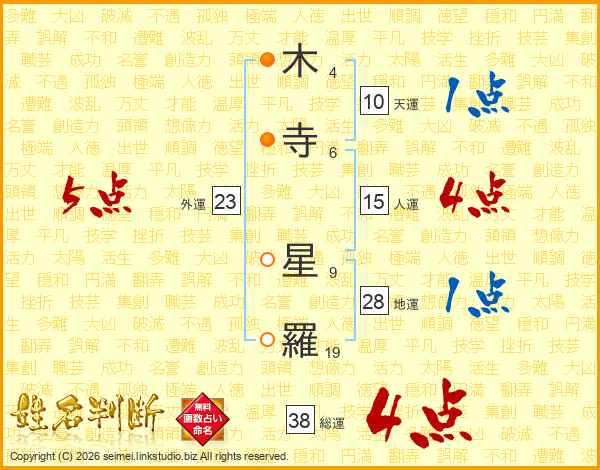 木寺星羅さんの総運は38画の4点!
