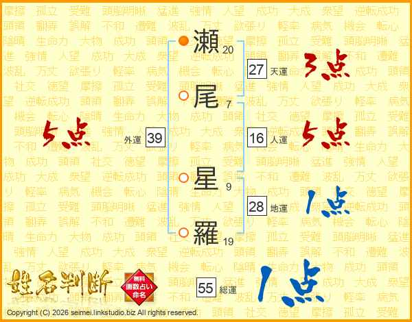 瀬尾星羅さんの外運は39画の5点!
