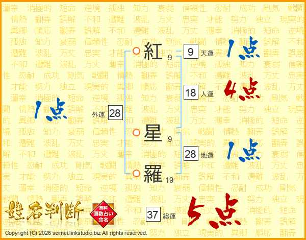 紅星羅さんの総運は37画の5点!