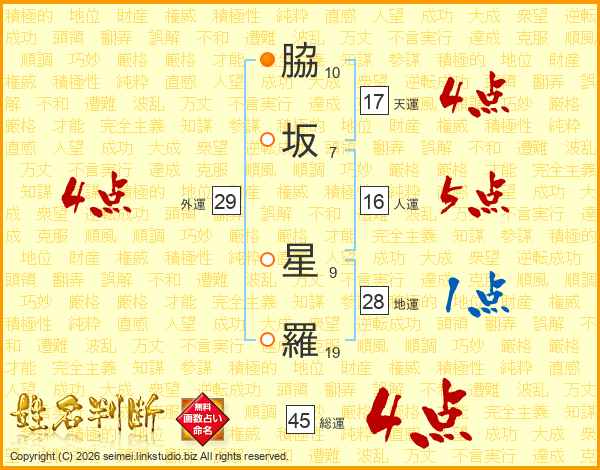 脇坂星羅さんの総運は45画の4点!