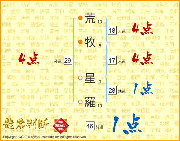 荒(10画)牧(8画) 星(9画)羅(19画)