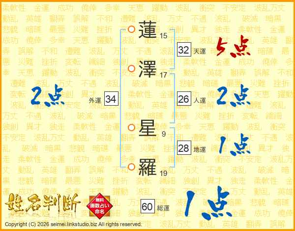 蓮(15画)澤(17画) 星(9画)羅(19画)