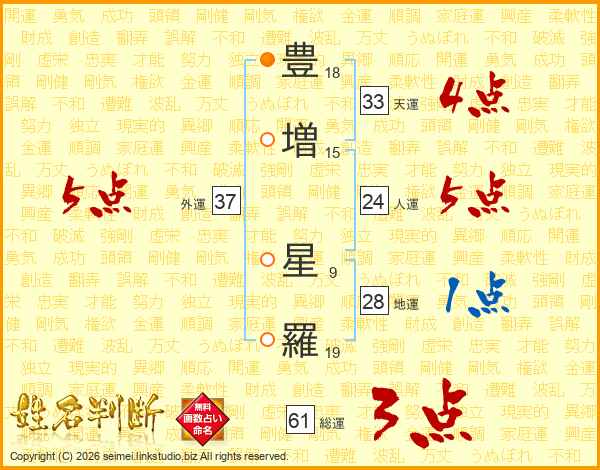 豊(18画)増(15画) 星(9画)羅(19画)