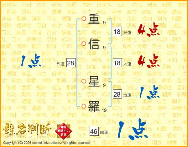重(9画)信(9画) 星(9画)羅(19画)