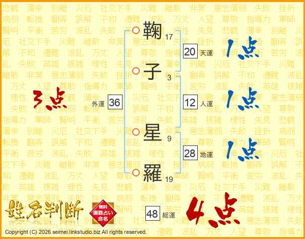 鞠子星羅さんの総運は48画の4点!