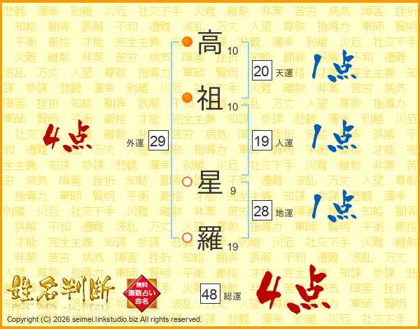 高(10画)祖(10画) 星(9画)羅(19画)